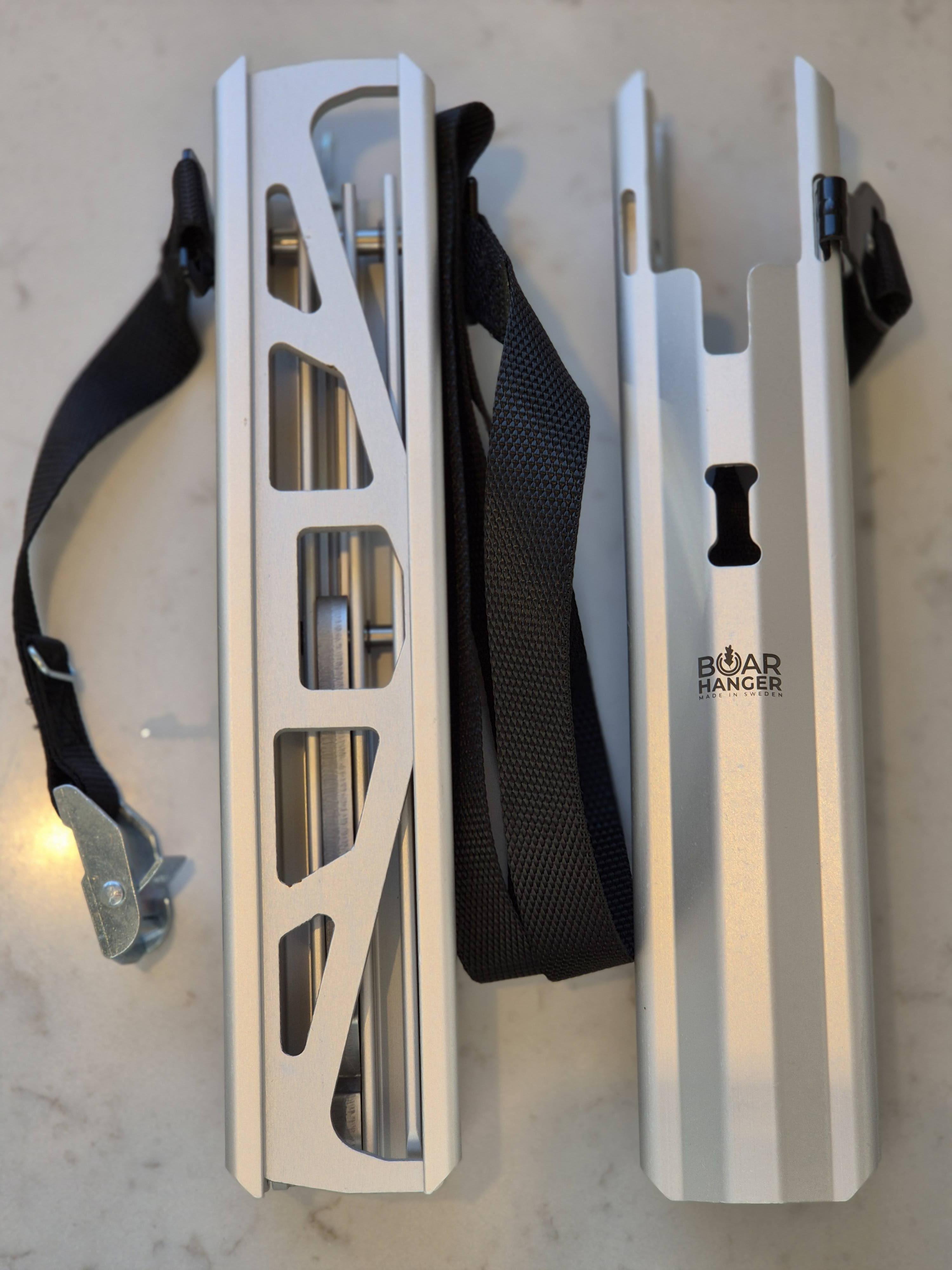 Tillverkad i aluminium, hopfällbar och så pass kompakt att den ryms i termosfickan på jaktväskan – eller alltid kan ligga med i bilen – gör att Boarhanger enkelt kan följa med oavsett terräng, väder eller jaktform.